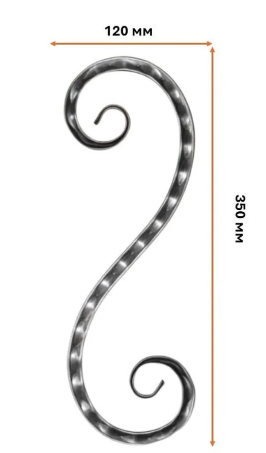 Кованый элемент "Волюта" с декоративной фактурой 350х120 мм.